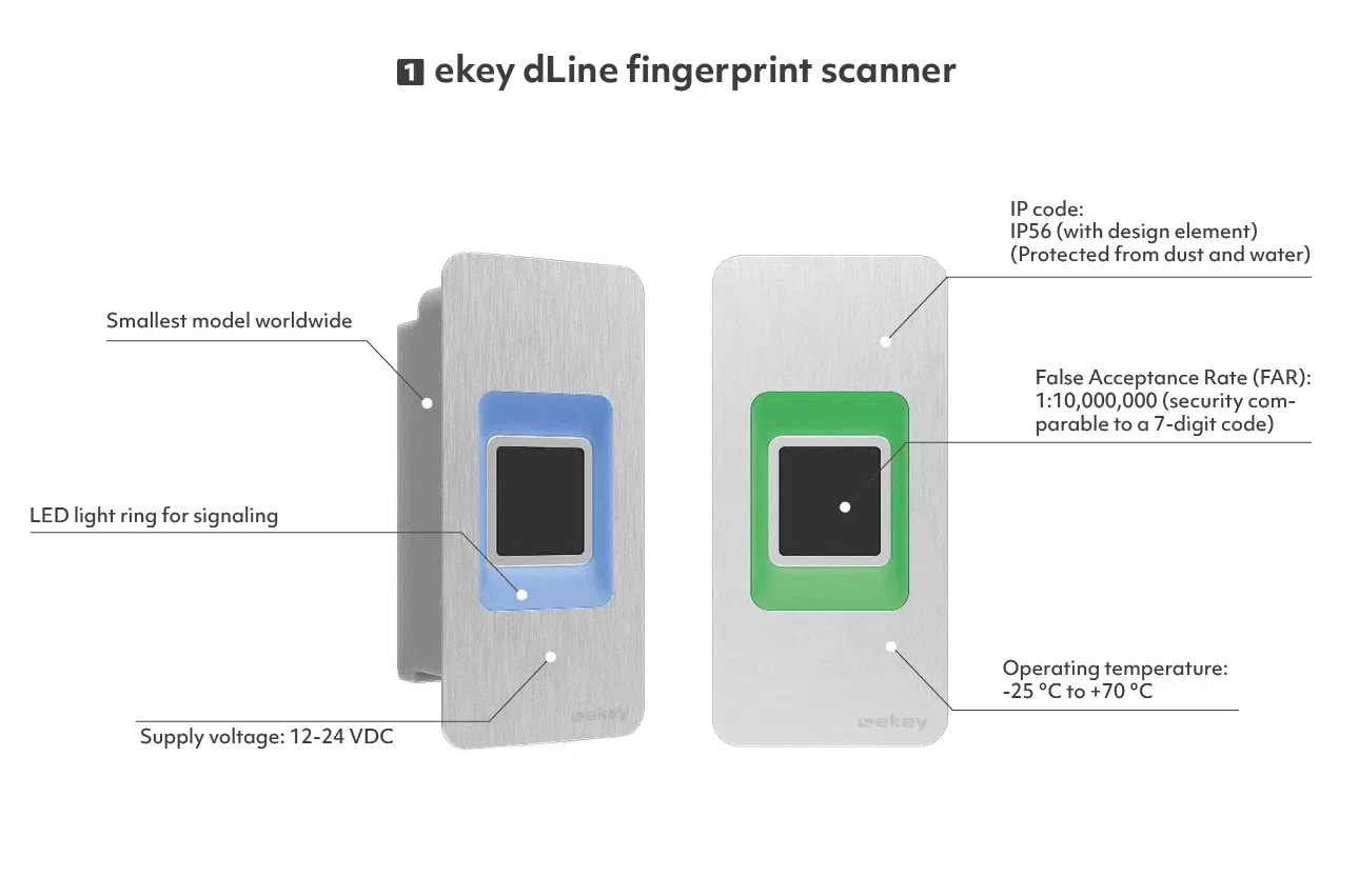 - The ekey dLine offers maximum convenience and security, can be flexibly extended and integrates seamlessly into modern smart home systems